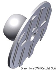 Sistema di aggancio LP-DF8 a basso profilo, carico 5 kg, con spessore totale maschio + femmina di 14 mm. Maschio con fissaggio con mastice o con vite centrale, femmina da avvitare nel pannello. Foro per femmina Ø 25 mm. La coppia è autoallineante.