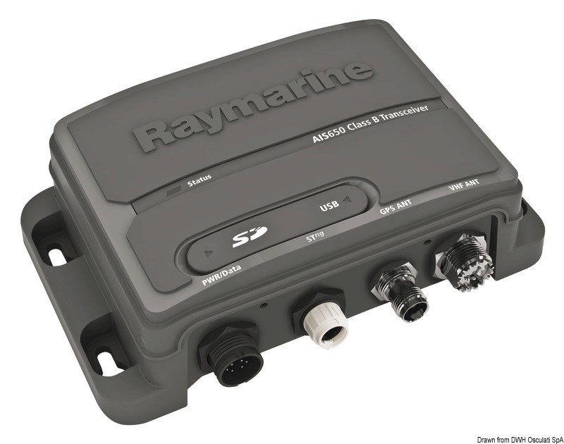 L' AIS700 Raymarine è un ricetrasmettitore con sistema di identificazione automatica (AIS) di Classe B e uno splitter integrato per l'antenna VHF; collegamenti multipli tra cui SeaTalkNG, NMEA2000, NMEA0183.