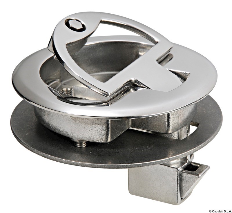 Chiusura a scatto con maniglia rientrante a molla. Tutto acciaio inox AISI 316 lucidato a specchio.