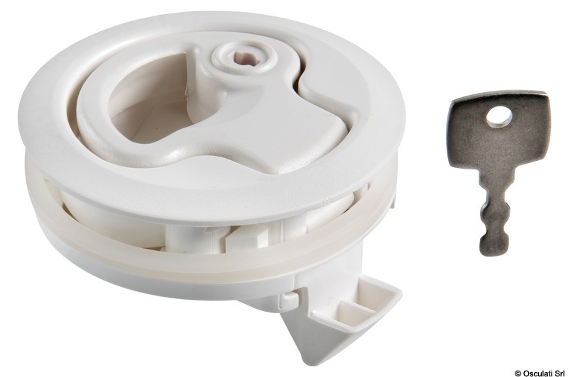 In nylon bianco, completo di squadretta in acciaio inox di battuta e 2 spessori da 2 mm cad.