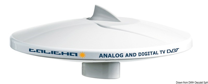 Antenna TV per il digitale terrestre, completa di amplificatore automatico (AGC Automatic Gain Control) che amplifica il guadagno di segnale quando necessario e filtro LTE incorporato. Dispone di 2 uscite TV ma grazie ad un deviatore opzionale consente il collegamento di un ulteriore televisore a bordo oppure di un televisore e una ricezione radio AM/FM.