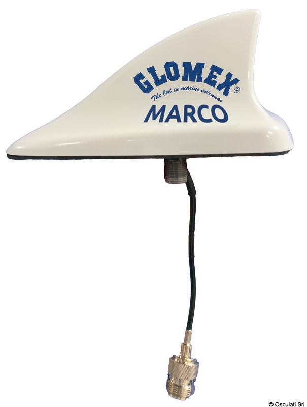 Antenna VHF marina a corto raggio e a forma di pinna, con un basso profilo adatto alle moderne imbarcazioni a motore di medie dimensioni e ai RIBS.