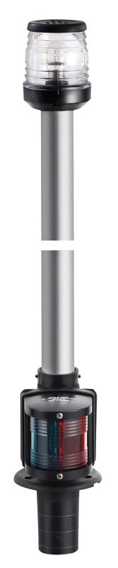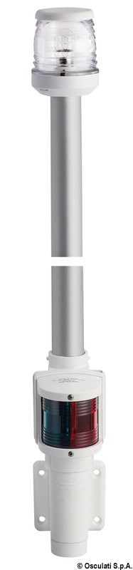 Per scafi < 20 m, con fanale certificato COLREG72. Completa di base in nylon nero o bianca sulla quale si inserisce a scatto l’asta dando il contatto e di cappuccio a tenuta stagna che chiude la base quando l’asta è sfilata. Provvista di un fanale da 360° e fanale di via rosso/verde.