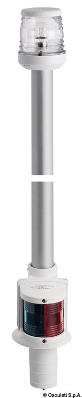 Per scafi < 20 m, con fanale certificato COLREG72. Completa di base in nylon nero o bianca sulla quale si inserisce a scatto l’asta dando il contatto e di cappuccio a tenuta stagna che chiude la base quando l’asta è sfilata. Provvista di un fanale da 360° e fanale di via rosso/verde.