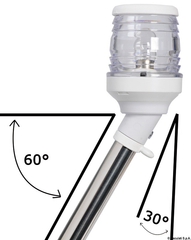 Per imbarcazioni < 20 m. Versione estraibile. Fanale in policarbonato e AISI 316. Certificata COLREG72.