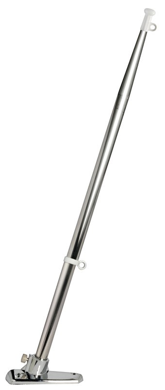 Sono lucidate a specchio. Complete di basetta. Munite di anelli di fissaggio bandiera regolabili in distanza. Completi di gommino paracolpi in cima. E’ un prodotto molto robusto. Tutti i modelli sono completi di galletto di fermo. Inclinazione 30°.