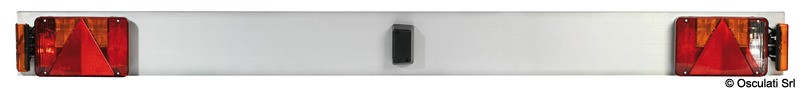 Barra alluminio 180 cm, 15 cm h. Fanale DX: posizione + stop + freccia + luce retromarcia. Fanale SX: posizione + stop + freccia + luce targa + luce nebbia. Fanale targa supplementare. Spina 13 poli.