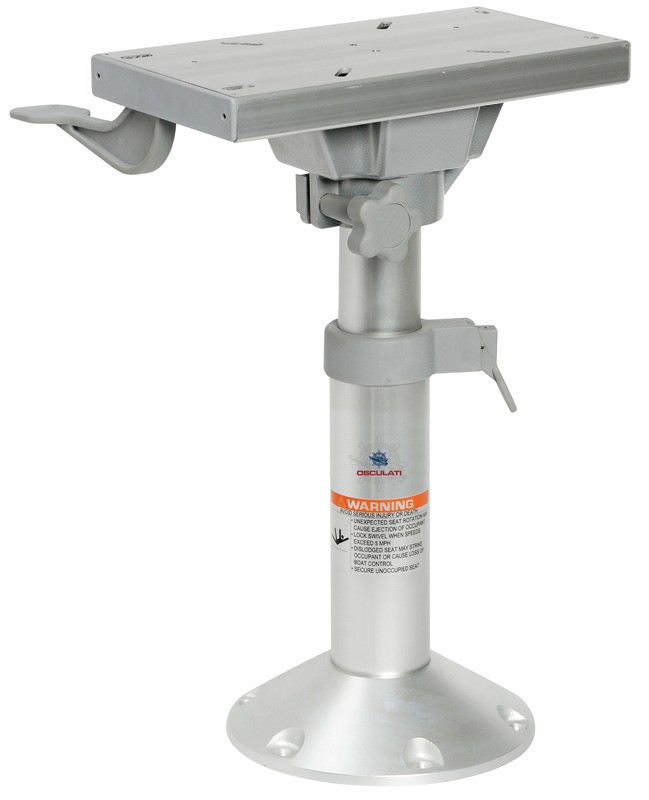 Base e colonna in alluminio anodizzato + supporto sedile con slitta girevole in alluminio anodizzato.