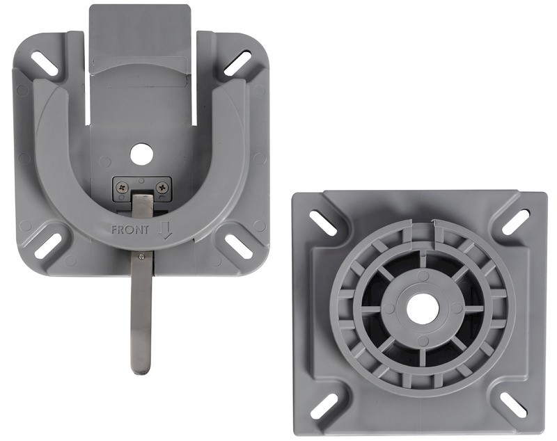 Base con sgancio rapido. Posizione fronte marcia bloccata e rotazione a 360° frizionata.