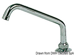 Beccuccio girevole in ottone cromato per lavelli. Altezza 140 mm, raggio 150 mm, portagomma 15 mm