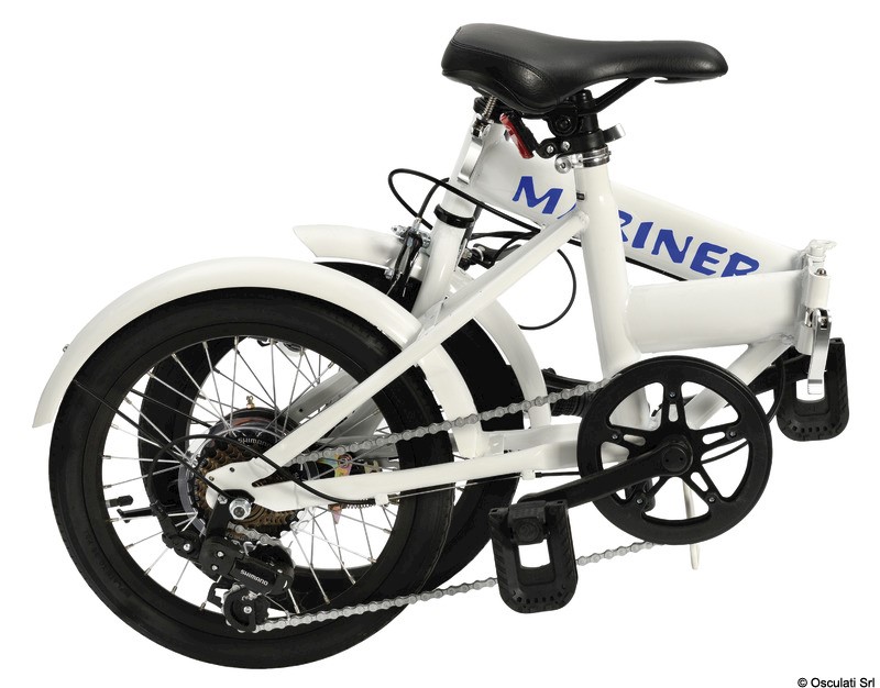 Ruote in alluminio da 16”x1,75”, cambio SHIMANO 7 marce, telaio in acciaio al carbonio verniciato con resine epossidiche, chiusura ultra rapida in 10”, con sistema brevettato.