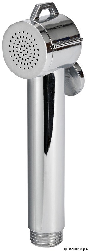 Doccia in ABS cromato, vano di allaggiamento bianco in ASA UV resistente.