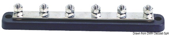 Base plastica ad alta capacità isolante. Barra di supporto in rame nichelato, viti e dadi in acciaio inox. volt 12/48.