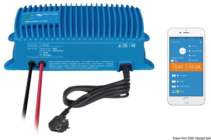Usando l'App Victron-connect questi caricabatteria si collegano al vostro smartphone , tablet o computer via Bluetooth, consentendo la configurazione iniziale e visualizzando tutti i dati di carico.