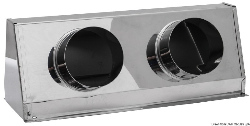 In acciaio inox; adatti per convogliare, tramite tubi flessibili, l’aria alla base dei motori entrobordo. Sono costruiti per essere abbinati alle prese d’aria 53.401.50/51.