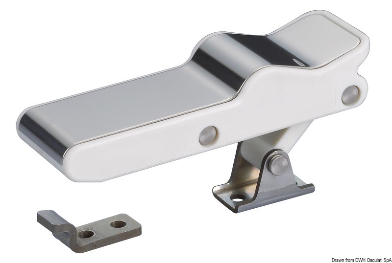 Con chiusura a leva eccentrica. In termogomma elastica con frontale in acciaio inox lucidato a specchio. Escursione elastica 6 mm.