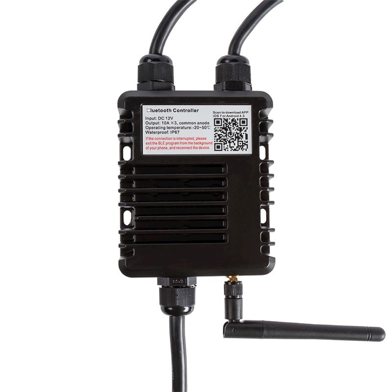 Il controller 13.237.50 permette di selezionare e mixare i 3 colori base rosso/verde/blu, ottenendo varie tinte ed in più il colore bianco, inoltre consente di ritmare la luce seguendo la musica di bordo via bluetooth.