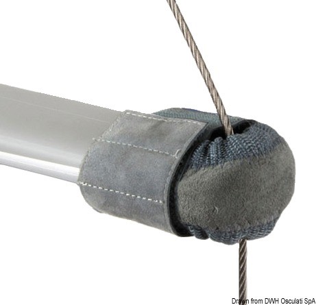 Pelle trattata antiacqua, sale, UV, con bordatura elastica ed anima in neoprene.