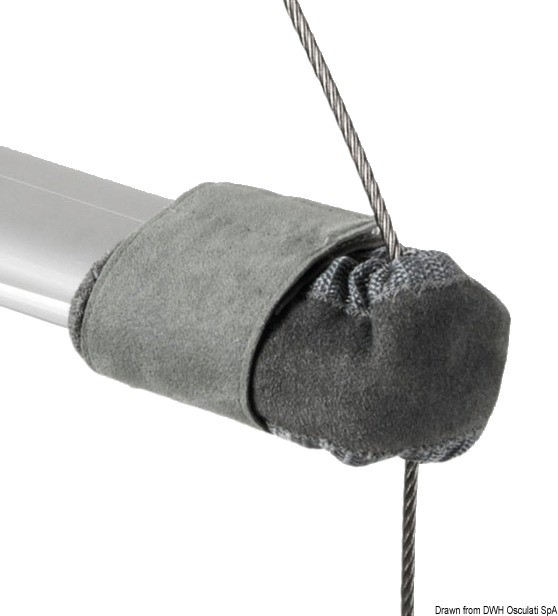 Pelle trattata antiacqua, sale, UV, con bordatura elastica ed anima in neoprene.