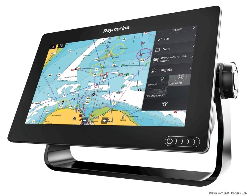 - nella versione RV ha modulo ecoscandaglio integrato CHIRP DownVision, CHIRP Sonar, 600W, SideVision e 3DRealVision;