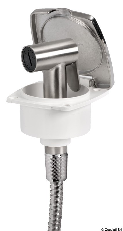 Doccia in acciaio inox, vano di alloggiamento bianco in ASA UV resistente.