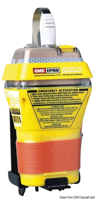 - l'antenna si dispiega automaticamente quando si rimove l'EPIRB dalla sua staffa;