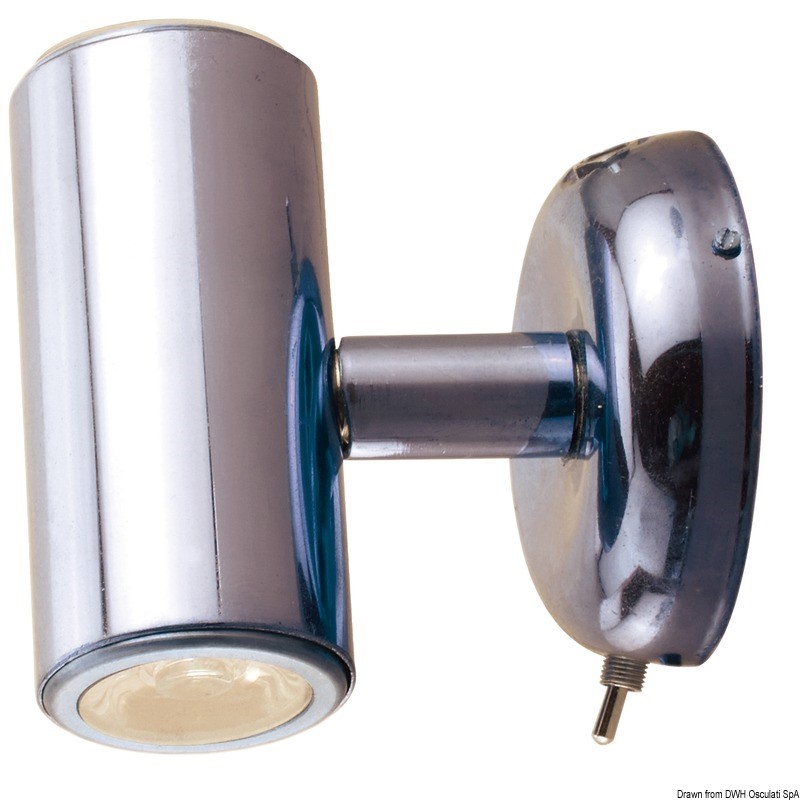 Corpo in acciaio inox. Fissaggio a parete. Luce verso il basso e verso l'alto.