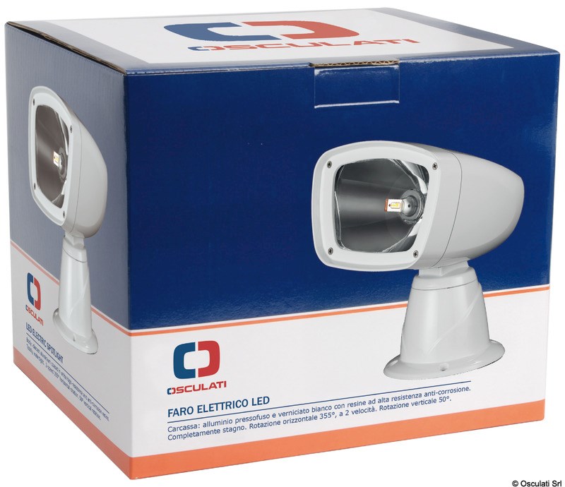 Carcassa: alluminio pressofuso e verniciato bianco con resine ad alta resistenza anti-corrosione. Completamente stagni. Rotazione orizzontale 355°, a 2 velocità. Rotazione verticale 50°. Combo LED di alta qualità. Consumo 54 W equiparabili ad oltre 100 W di una lampadina classica.