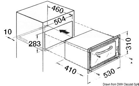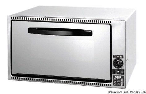 Apertura orizzontale. Frontale acciaio inox lucido + vetro fumè. Interno forno smaltato anti-aderenza. Completo di accensione elettronica a basso voltaggio + luce interna.