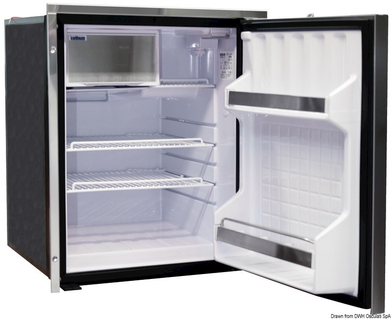 E’ già completo di flangia per incasso, porta resta a filo della flangia. Chiusura con serratura a scatto. Compressore SECOP 12/24 V silenzioso. Luce a LED interna. Predisposizione per collegamento con smart energy control 50.932.20. Pellicola anti-impronta. Freezer con sportello inox, porta con isolamento migliorato e maniglia ergonomica.