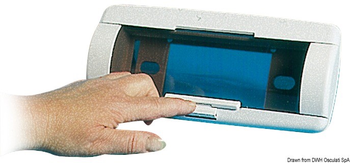 Frontale in plexiglass fumè che ruota all’interno della carcassa. Realizzato in ABS resistente UV, vano universale a norme DIN.