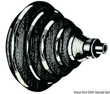Completa di soffietto in gomma “Dutral” anti-salino a tenuta stagna per il passaggio di cavi per timoneria, tubi per benzina, cavi per telecomando.