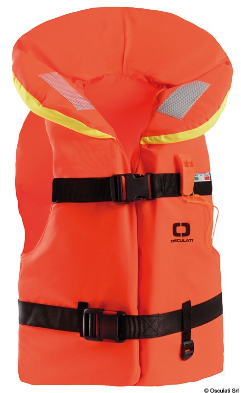 Cordino sottogamba e nastri regolabili con fibbia a scatto. Collo ergonomico. Obbligatorio come dotazione di bordo entro le 3 e 6 miglia