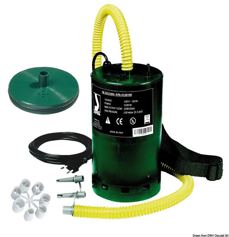 Gonfiatore elettrico professionale studiato per gli operatori del settore: fabbricanti di gommoni, cantieri, riparatori e rivenditori.