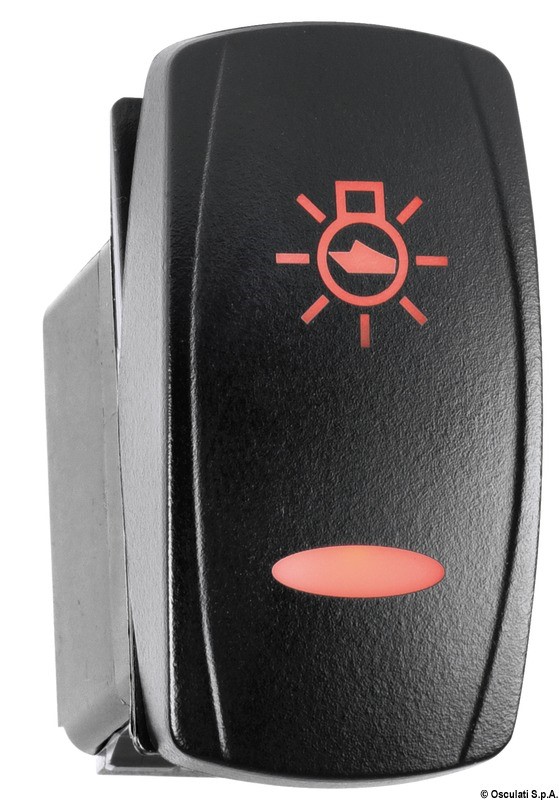 Impermeabili IP56, richiedono per l'installazione un foro rettangolare da 21,5x36,8 mm. Capacità max 20 A/12 V e 10 A/24V. Completi di doppio LED, uno che illumina il simbolo dell'utenza sempre acceso ed uno che segnala l'attivazione dell'interruttore.