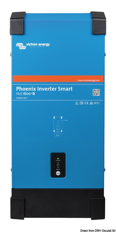 Caratteristiche tecniche: carcassa in alluminio, ventilazione forzata con sensori di temperatura, protezione contro corto-circuito, allarme voltaggio batteria troppo alto o troppo basso, inversione di polarità, tensione di ritorno in uscita, etc...