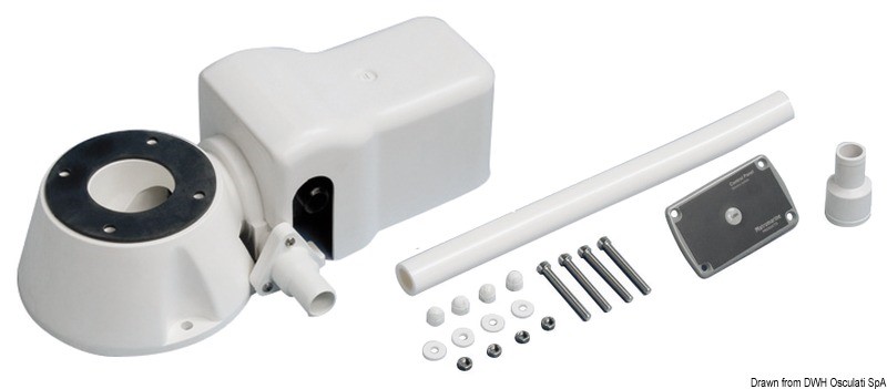 Per WC a mano tipo 50.206.25; 50.207.25/27; 50.217.25/30; 50.207.50. Il kit comprende il basamento, la pompa ed il motore elettrico. Adattabile ai WC: JABSCO, SPX, RARITAN, GROCO.