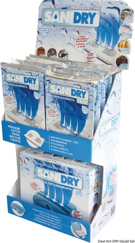 Costituito da un guscio in plastica all'interno del quale viene posizionata la vaschetta SANIDRY TRY sigillata. Non c'è rilascio alcuno di liquido.