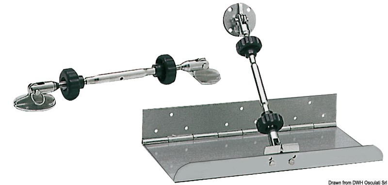 E’ costituito da due tenditori in acciaio inox da 10 mm, più quattro piastre in acciaio inox per il fissaggio dei tenditori ai flap e allo scafo, più due volantini speciali per il bloccaggio e lo sbloccaggio rapido a mano dei tenditori.