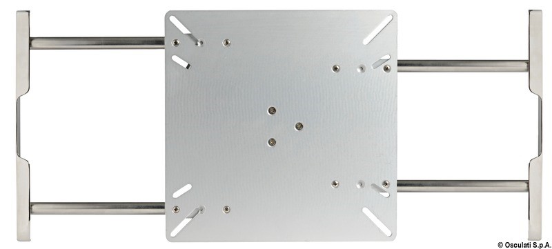 Da applicare sotto la piastra tavolo 48.720.01 e 48.720.03 (già predisposta). Slitte in alluminio anodizzato, supporti e cilindri telescopici in acciaio inox 316 lucidato a specchio.