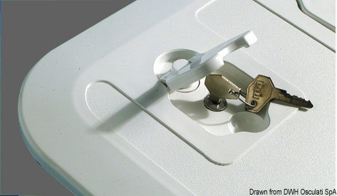 In ABS bianco. Coperchio completamente carenato, nasconde totalmente il telaio. La paratia frontale é ad incastro, pertanto la tasca può essere montata con apertura verso l’alto oppure verso il basso.