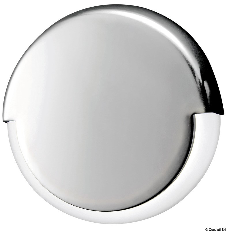 Corpo in plastica bianca, frontale in acciaio inox lucidato a specchio. Montaggio a scatto.