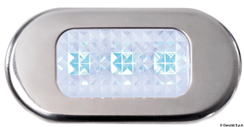 Corpo in policarbonato traslucido. Ghiera in acciaio inox. Adatta per illuminare gli scalini. Montaggio tramite viti.