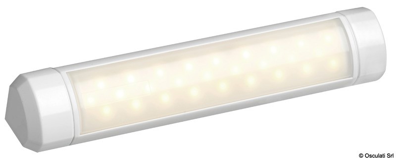 Sorgente luminosa a LED SMD. Montaggio su piano. Ideale per bagni, cucine, gavoni, locale motori, sotto boma su barca a vela ecc. Carcassa in tecnopolimero bianco.