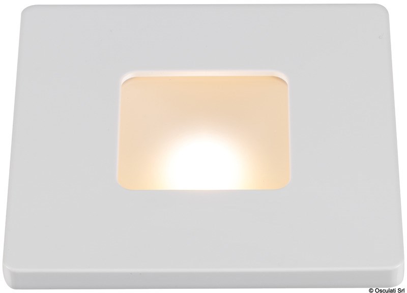 Carcassa in policarbonato completa di ghiera. Lente satinata. Un solo LED centrale. Fissaggio con viti.