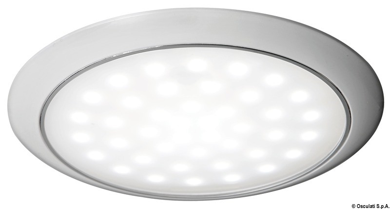 Corpo in ABS, lente in vetro satinato. Senza incasso. Versione ultrapiatta con interruttore touch e due livelli di luminosità.