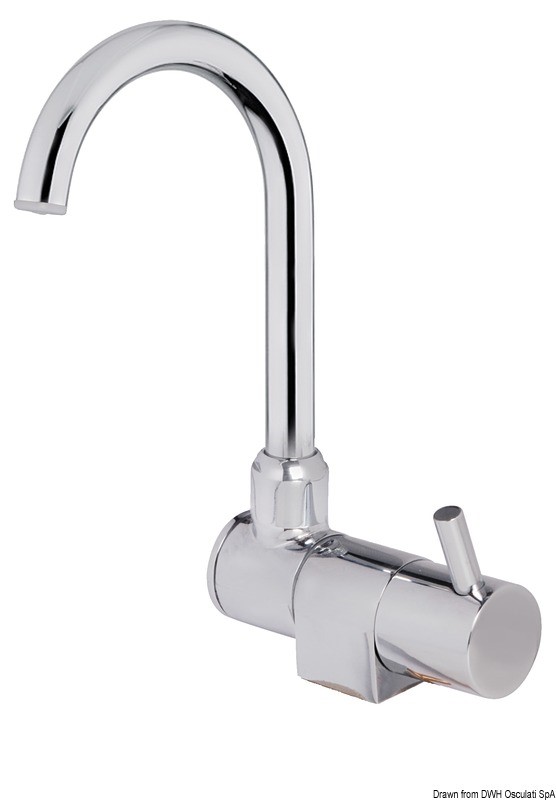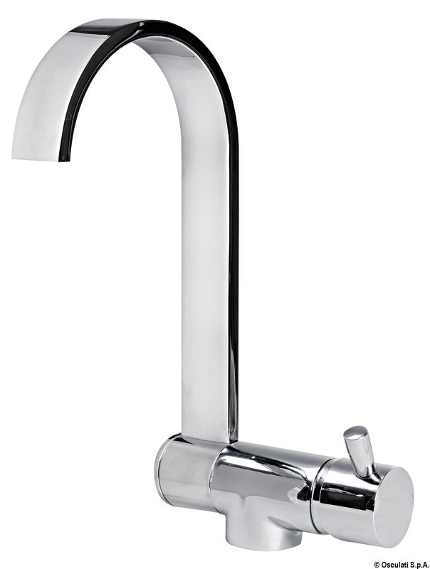 In ottone cromato. Può essere montato all'interno del lavello al fine di avere il piano completamente liscio. Possibilità di installazione su parete verticale.