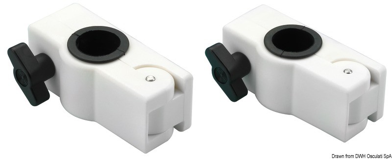 Morsetto a cerniera in tecnopolimero adatto a supportare qualsiasi piano / contenitore / portabicchiere ecc. che si avvitano su un lato del morsetto.