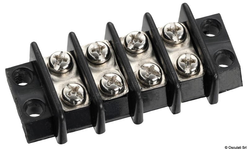 Con morsetti terminali in ottone nichelato. Separatori per evitare contatti accidentali.
