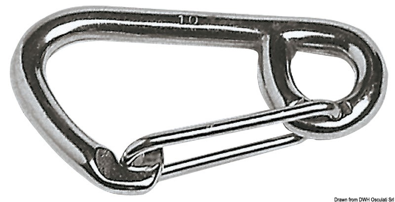 In acciaio inox AISI 316 lucidati a specchio. Risolvono il problema dei moschettoni legato alla scarsa apertura degli stessi.